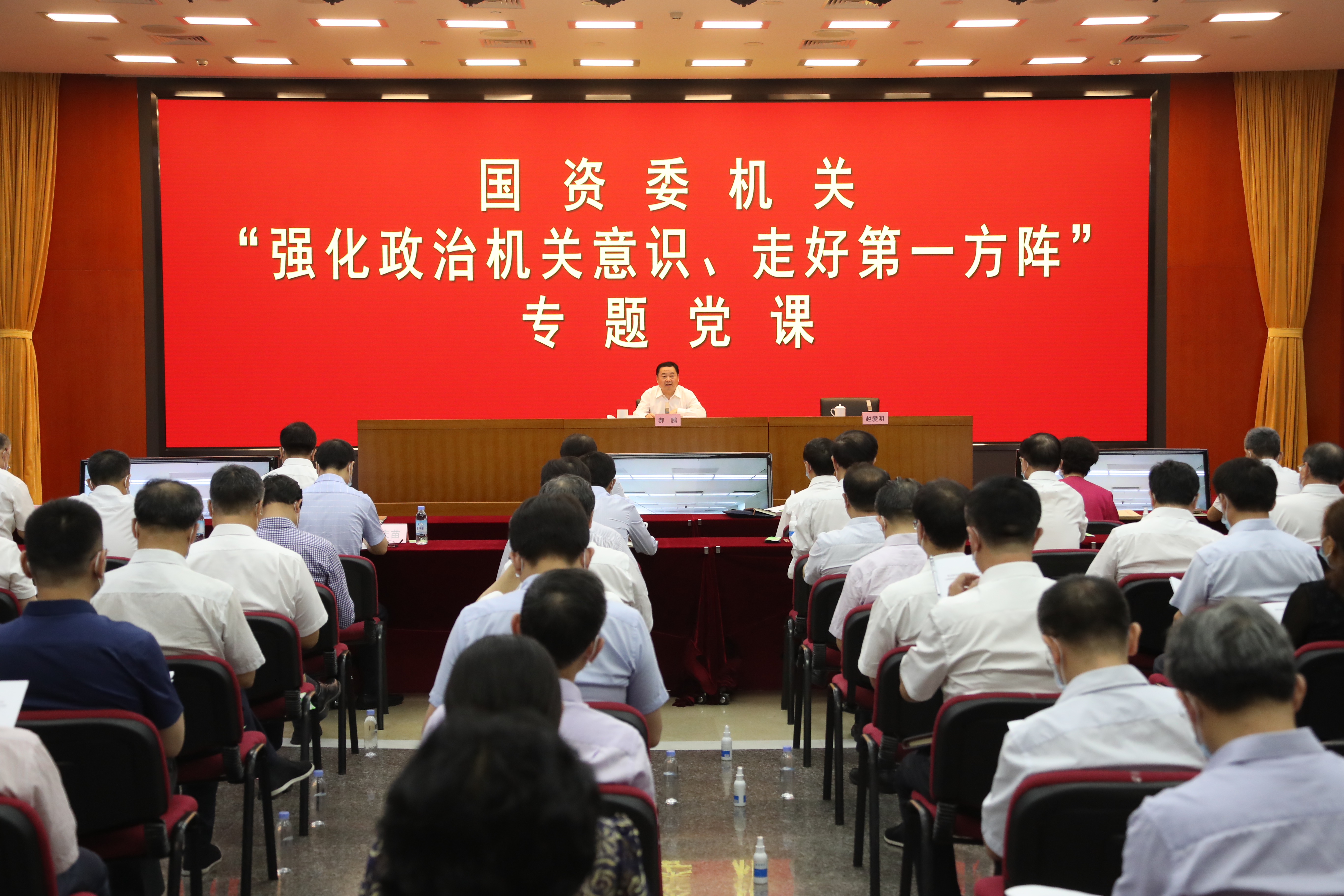 在中國共產(chǎn)黨建黨99周年之際,7月1日,國資委黨委書(shū)記、主任郝鵬以“強化政治機關(guān)意識、堅定走好第一方陣”為主題,為國資委機關(guān)全體黨員干部講專(zhuān)題黨課,帶領(lǐng)大家一起深入學(xué)習貫徹習近平總書(shū)記關(guān)于牢固樹(shù)立政治機關(guān)意識、加強機關(guān)黨的政治建設的重要論述精神,進(jìn)一步統一思想、深化認識,對國資委創(chuàng )建讓黨中央放心、讓人民群眾滿(mǎn)意、讓中央企業(yè)信賴(lài)的模范機關(guān)進(jìn)行再動(dòng)員再部署。