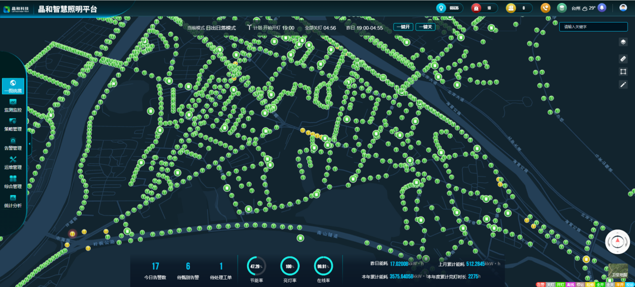 中節能晶和城市智慧照明管理平臺 晶和科技基于自主研發(fā)的城市智慧照明管理平臺,通過(guò)運用NB-Iot、4Gcat.1等先進(jìn)技術(shù),將LED照明燈具接入平臺系統,實(shí)現遠程燈光控制、城市照明一圖統覽、監控監測、策略管理、告警管理、運維管理等功能,做到按需照明和精細化管理,提高城市照明運行的可靠性與響應速度,點(diǎn)亮數字城市建設的“節能之路”。 與行業(yè)內同類(lèi)型平臺相比,該平臺具有安全性更高、兼容開(kāi)放性更強、人力成本更低等多項顯著(zhù)優(yōu)勢。目前,該平臺已經(jīng)在北京、寧夏銀川、安徽合肥、江西南昌等20多個(gè)城市部署應用,管理燈具近60萬(wàn)盞。
