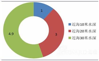 ? ?? 我國正在制定“十二五”能源規劃和可再生能源規劃,計劃2015年海上風(fēng)電裝機總量發(fā)展到500萬(wàn)千瓦,2020年提高到3000萬(wàn)千瓦。一個(gè)產(chǎn)值千億的海上風(fēng)電市場(chǎng)逐步成型。 ?????? 我國有18000公里長(cháng)的大陸海岸線(xiàn),可利用海域面積300多萬(wàn)平方公里,是海上風(fēng)能資源最豐富的國家之一。 ?????? 據前瞻資訊產(chǎn)業(yè)研究院的《2011-2015我國風(fēng)電行業(yè)發(fā)展前景與投資風(fēng)險分析報告》(下簡(jiǎn)稱(chēng):《報告》)顯示,我國近海10米水深以?xún)鹊暮S蝻L(fēng)能資源約1億千瓦,20米水深以?xún)鹊暮S蝻L(fēng)能資源約3億千瓦,30米水深以?xún)鹊暮S蝻L(fēng)能資源約4.9億千瓦。 我國近海風(fēng)電資源儲備情況(單位:億千瓦)