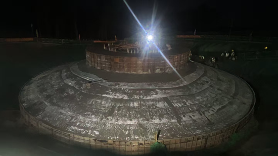 為確保首臺風(fēng)機基礎澆筑順利完成,東北區域公司工程管理部科學(xué)部署,組織專(zhuān)家進(jìn)行超危大工程論證,針對風(fēng)機基礎施工精度要求高等特點(diǎn),反復優(yōu)化施工方案,細化鋼筋綁扎、模板支護、混凝土配比等關(guān)鍵工序標準,嚴格落實(shí)安全與質(zhì)量管控,提前對施工單位人員開(kāi)展專(zhuān)項技術(shù)交底和安全培訓,現場(chǎng)安排專(zhuān)人對混凝土坍落度、澆筑速度、振搗質(zhì)量進(jìn)行全程旁站,同步做好混凝土養護預案,保障基礎施工質(zhì)量符合設計規范,為后續批量施工積累寶貴經(jīng)驗,確保如期完成各項建設任務(wù)。