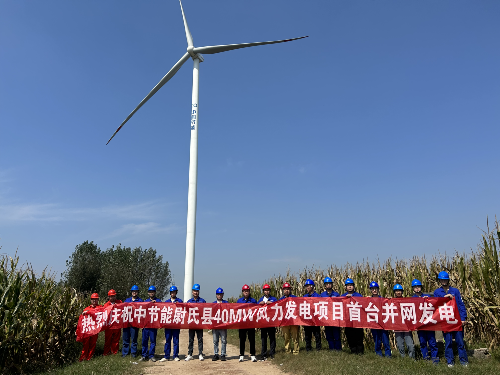 9月16日,中節能尉氏縣40MW風(fēng)力發(fā)電項目首臺風(fēng)機機組成功并網(wǎng)發(fā)電。